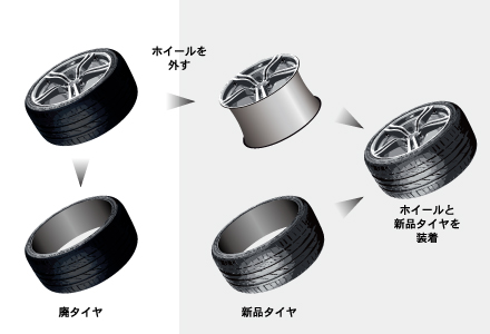 セットされた状態のタイヤ・ホイールを外して、タイヤ(もしくはホイール)を交換すること。